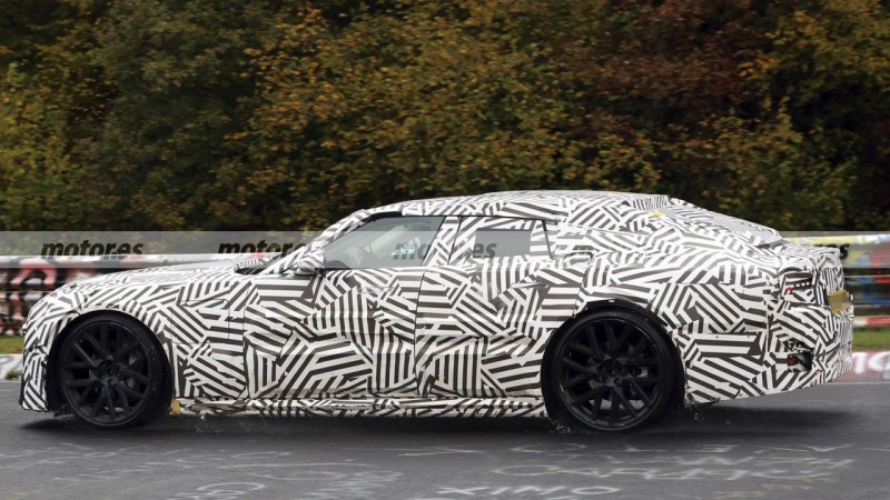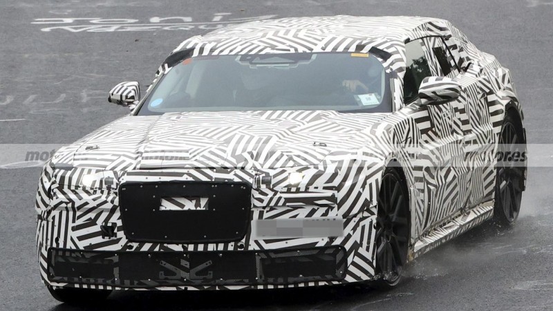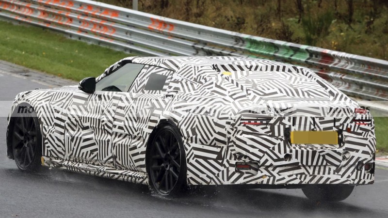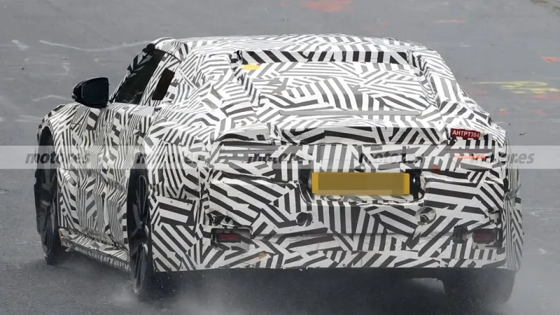 눈에 띄는 점은 좌측 펜더의 대형 충전 포트 커버, 그리고 후면부의 전동식 스포일러 가능성입니다.