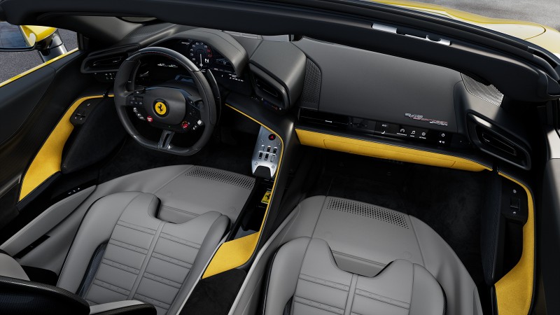 실내는 운전자가 주행에 완벽하게 몰입할 수 있도록 설계되었다. 스티어링 휠에는 상징적인 시동 버튼을 포함한 물리적 조작 버튼이 다시 적용되어 직관성을 높였고, 최신 HMI(Human-Machine Interface) 시스템은 더욱 편리한 상호작용을 제공한다.