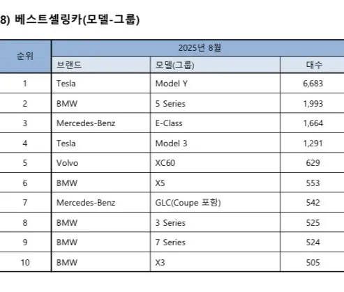 모델 Y 이러다 만대 찍는 거 아닐까요? 8월만 보면 쏘렌토보다도 많이 팔렸네요