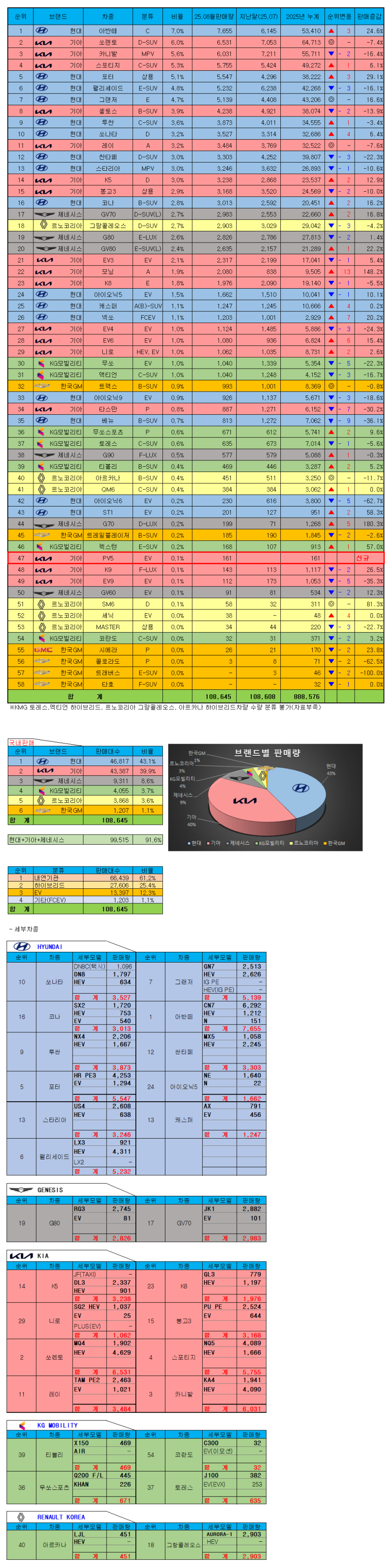 이게 뭔일? 8월 국내 자동차 판매량인데 이변이 있네요