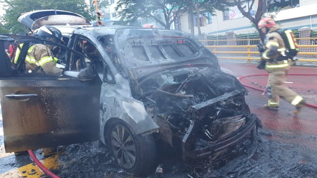 소방 당국에 따르면 도로를 지나가던 행인이 차에서 불이 나는 것을 보고 119에 최초로 신고했다. 신고를 받고 출동한 소방은 불이 난 지 약 5분 뒤인 오후 6시 25분께 불을 완전히 껐다.