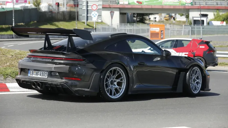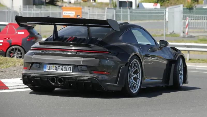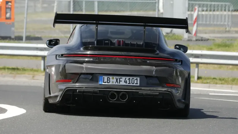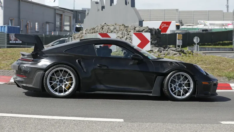 이번에 뉘르부르크링 인근에서 목격된 테스트 뮬은 기존과 마찬가지로 RS 특유의 공격적인 바디 패널과 컵카 스타일의 에어로 패키지를 갖추고 있었습니다. 전면부는 현행 모델과 거의 동일하지만, 양산형에서는 992.2 전용으로 바뀐 헤드라이트가 들어갈 예정입니다.