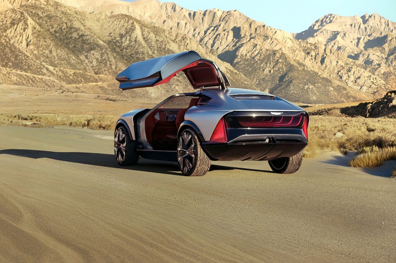 외관은 4인승 쿠페형 크로스오버 비율을 바탕으로 한 대담한 실루엣과 역동적인 전면 디자인을 갖추었으며, 24인치 휠과 높아진 차체는 사막과 같은 험준한 지형과 온로드에서 세련되고 고급스러운 주행감을 동시에 구현했다. 또한 새로워진 조명 시퀀스 연출(Choreography Lighting)과 수직형 리어 램프, 세밀하게 다듬어진 크리스털 플루티드 그릴, 유려한 측면 캐릭터 라인은 캐딜락 특유의 럭셔리 감각을 강조했다.