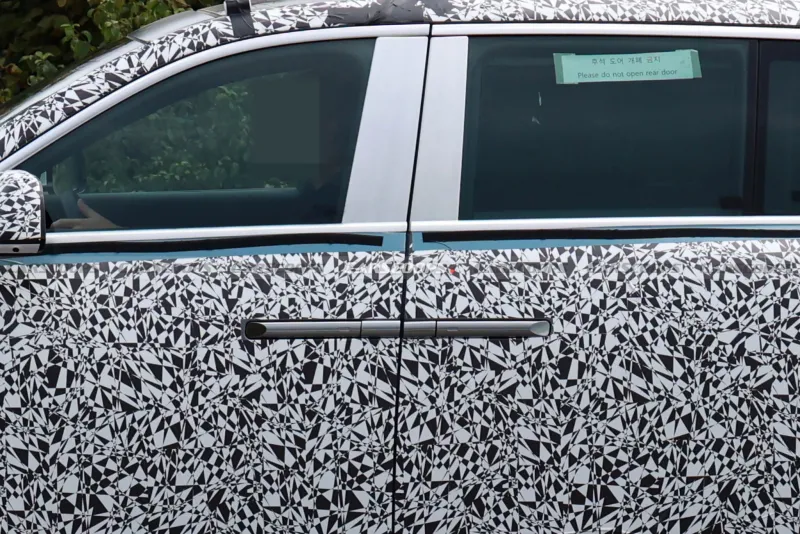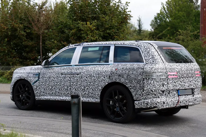 제네시스의 첫 플래그십 전기 SUV인 GV90이 점차 베일을 벗고 있다. 유럽에서 포착된 최신 프로토타입은 위장막을 최소화한 모습으로, 특히 롤스로이스에서나 볼 수 있던 ‘코치 도어’—즉, 뒷문이 뒷바퀴 방향으로 열리는 독특한 구조—가 눈길을 끈다.