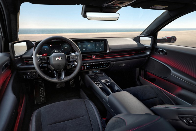 실내에도 N 라인 전용 3 스포크 스티어링 휠과 메탈 페달 및 풋레스트 등을 통해 스포티한 느낌을 극대화했다.