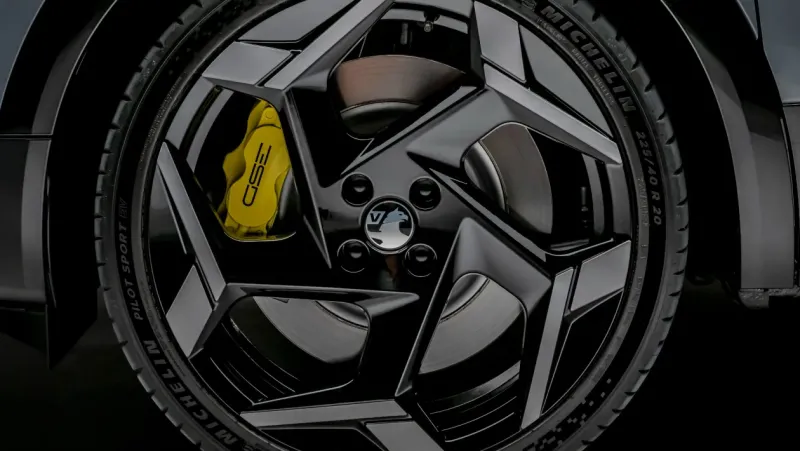 스티어링 역시 오펠의 전기 랠리 경주 경험을 바탕으로 새롭게 조율되었습니다. 1.6톤에 육박하는 무게를 감안하여 제동 성능도 대폭 강화했습니다. 전륜에는 380mm 대구경 디스크와 4피스톤 알콘(Alcon) 브레이크 캘리퍼를 장착했습니다. 20인치 알로이 휠에는 미쉐린 파일럿 스포츠 EV 타이어가 장착됩니다.