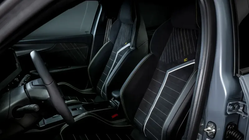 단순히 출력만 높이는 데 그치지 않았습니다. 향상된 성능을 운전자가 온전히 제어하고 즐길 수 있도록 차체 전반을 손봤습니다. 앞바퀴에는 기계식 차동제한장치(LSD)를 장착해 코너링 성능을 높였고, 서스펜션은 10mm 낮추고 새로운 이중 유압식 쇼크 업소버를 적용했습니다. 특히 뒤 차축은 기존 모델보다 롤 강성을 189%나 높여 차체의 좌우 쏠림을 크게 줄였습니다.