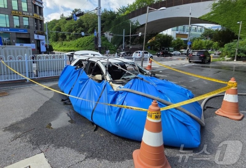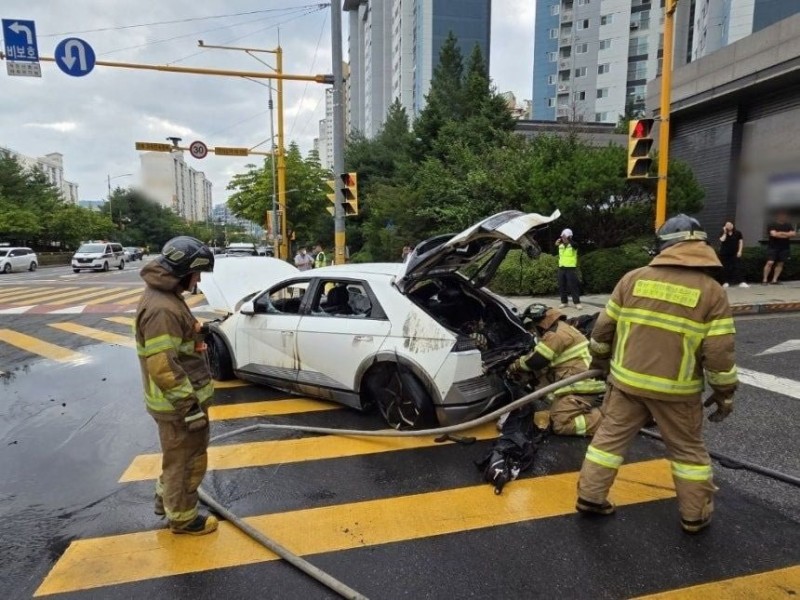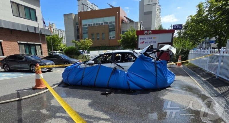 오늘 천안 주차장 아이오닉5 화재 진화된 사진