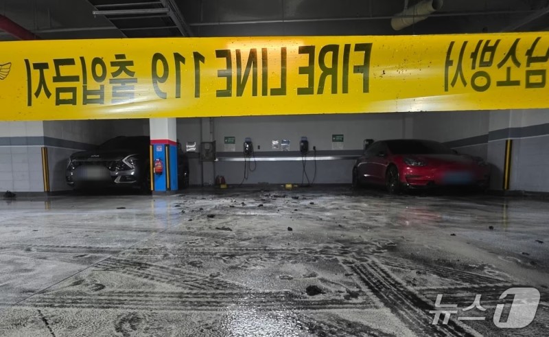 21일 오전 5시 40분께 충남 천안시 동남구 청당동의 25층짜리 아파트 지하 1층 주차장에 있던 현대 아이오닉5 전기차에서 불이 났다.