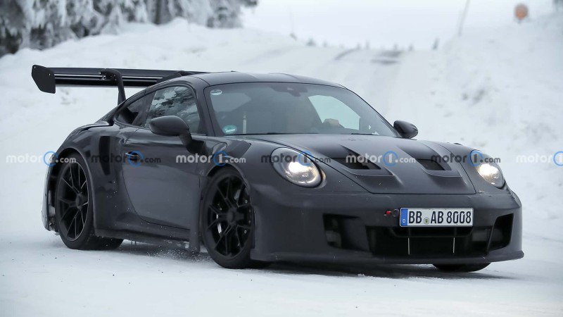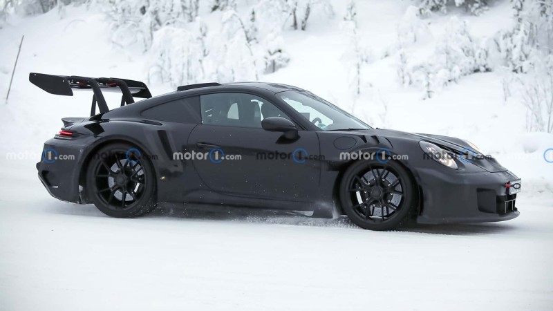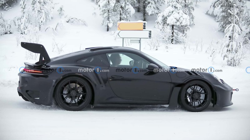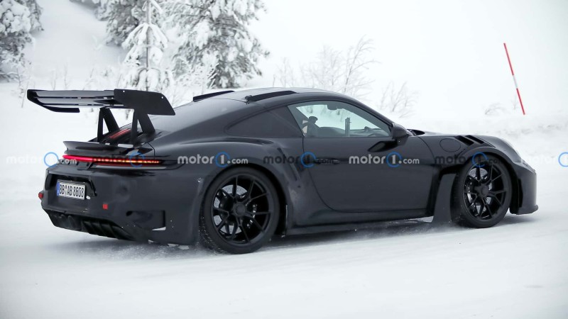 포르쉐 992.2 GT3 RS 프로토타입이 북유럽 테스트 중 또 잡혔습니다. 메가 리어윙 달고요.