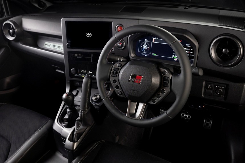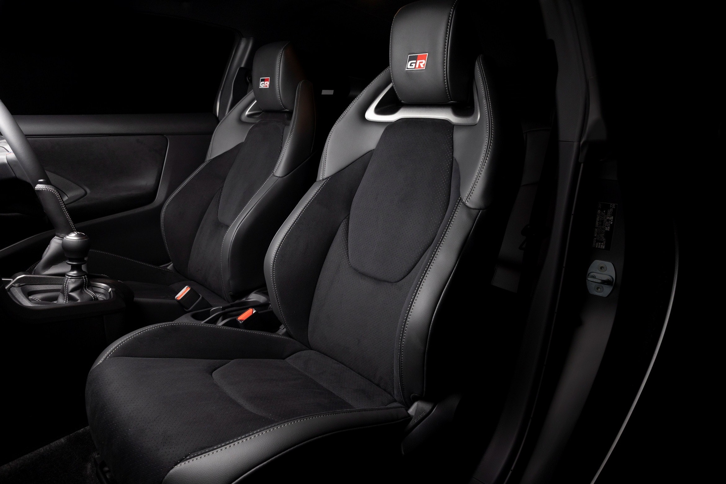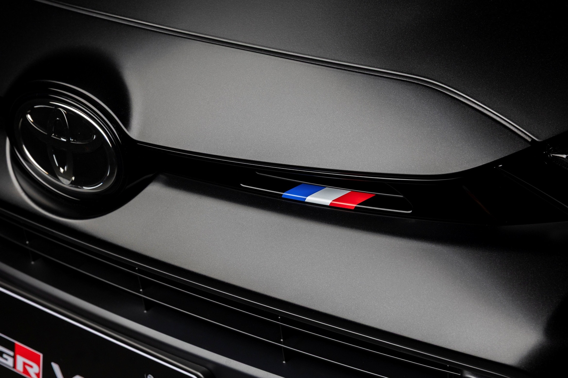 실내로 들어서면 랠리카를 연상시키는 수직형 파킹 브레이크 레버가 눈에 띄며, 그레이 스티치가 들어간 가죽 마감이 적용됐다. GR 스티어링 휠에는 프랑스 트리컬러 스티치가 더해졌고, SEB·모리조 모드 전용 TFT 계기판 그래픽, 그리고 개별 넘버가 새겨진 플라크를 통해 희소성을 분명히 한다.