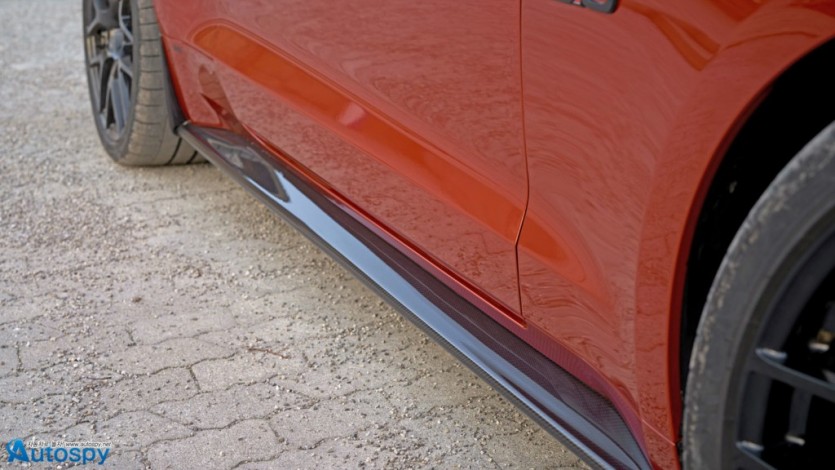 조금이라도 더 많은 공기를 빨아들이기 위해 그릴을 제거했고 범퍼 아래인 카본으로 만든 스플리터를 붙였다. 20인치 단조휠과 미쉐린 고성능 타이어의 조합은 가이거카즈가 즐겨쓰는 조합이고 사이드 스커트와 트렁크 스포일러, 그리고 디퓨저까지 모두 카본으로 만들었다. 강렬한 오렌지 컬러는 800만원 정도의 옵션 품목이다.